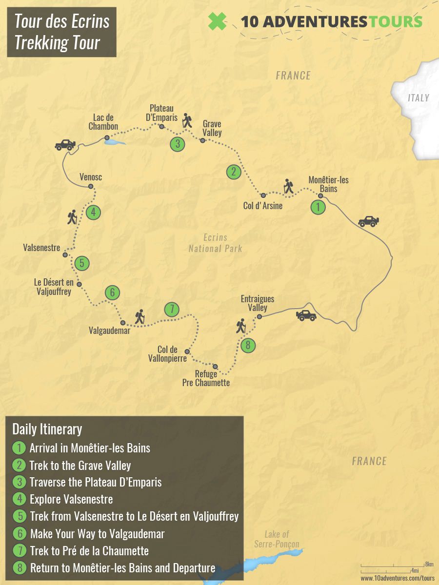 Where does the 8-Day Tour des Ecrins Trekking Tour end?