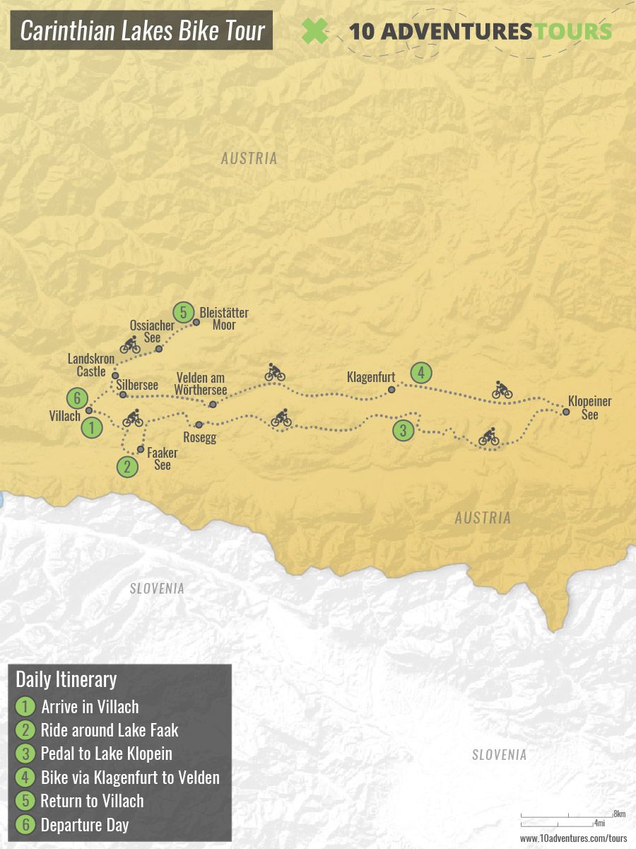 Witness the sun, mountains, water, and southern lifestyle of Austria’s Carinthia Region on the Carinthian Lakes Bike Tour! As you make your way through the romantic valleys, sparkling lakes, majestic mountains, and picturesque landscapes that this region has to offer, the traditional villages and charming resort towns along the route will beckon you to take a break from cycling to absorb the rich history and culture of Austria.