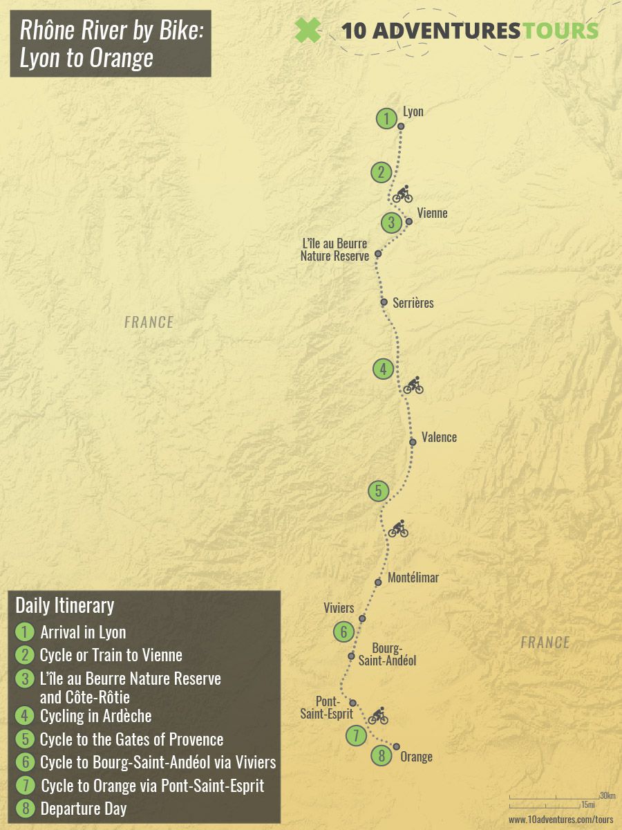 Itinerary for Rhône River by Bike: Lyon to Orange